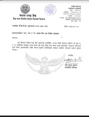 इजाजतपत्र प्राप्त संस्थाको सञ्चालक समितिको निर्णय हुनु पर्नेछ । ग्राहक ऋणीको विवरण राष्ट्र बैंकको रिर्पोटिङ पोर्टलमा तोकिएको ढाँचामा हुनु पर्नेछ भनिएको छ । आवेदनका लागि राष्ट्र बैंकले केही सर्तहरु पनि अघि सारेको छ ।
