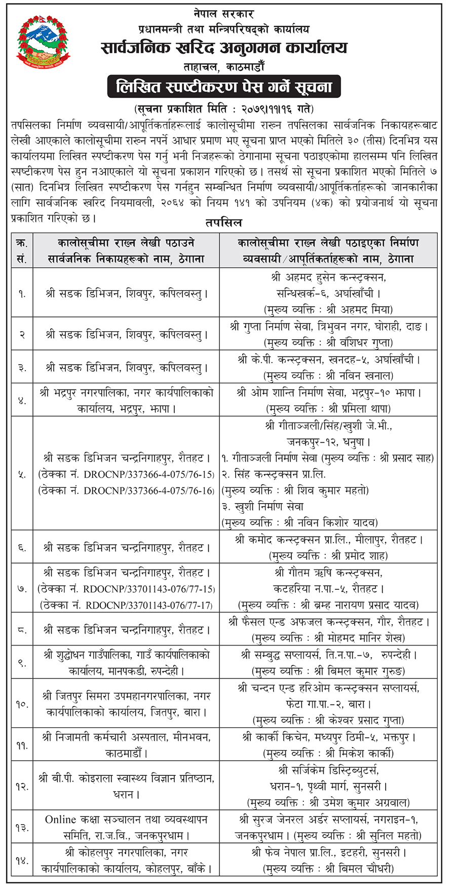 सार्वजनिक खरिद अनुगमन कार्यालयले १४ निर्माण कम्पनीलाई कालो सूचीमा राखिने